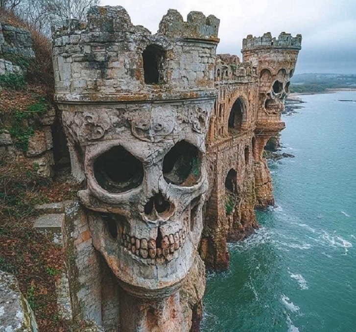 Well Now, Always Remember, Superdavebeastula The Tall White Gothic Vampire Alien, Coming To You from Laval Quebec Canada. So. It Seems to Me that we have an amazingly Gothic looking scenery here. It looks to be an old stone fortress that looks out over the sea or lake. On either side of the main fortress or castle are two guard towers. These towers are shaped as skulls wearing crowns. The question that my Digital Host, David, and I are asking is whether this picture is authentic or is it made with Artificial Intelligence? If anybody has the right answer just say it below in the comments. Thankyouverymuch. ๐๐๐๐๐โ ๐๐ฅฐ๐ฐ๐๐ป๐ป