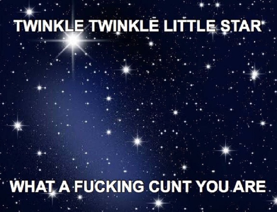 Well Now, Always Remember, Superdavebeastula The Tall White Gothic Vampire Alien, Coming To You from Laval Quebec Canada. So. It Seems to Me that we have an Astronomical saying here. My Digital Host, David, and I have an agreement that every sentient person within the Universe has their own star attached to them. Depending on this person, these stars twinkle or dim in the skies of every earth like world. Some people are so unpleasant that you have to sing them the star song that you see in this photo. After encountering this type of person, the best thing to do is sing this song to that person's star and you feel better afterwards. Thankyouverymuch. ๐๐๐๐๐๐