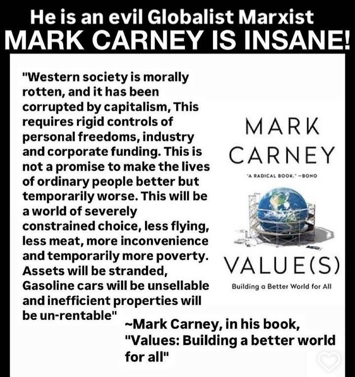 Well Now, Always Remember, Superdavebeastula The Tall White Gothic Vampire Alien, Coming To You from Laval Quebec Canada. So. It Seems to Me that this Mark Carney is worse than anybody would have thought. This excerpt from a book he wrote VERY much proves what a communist dictator he wants to be. He has this deep hatred of Western Society and Capitalism. He wants to implement Rigid Control over personal freedoms, Industry and Corporate Funding. He also wants to constrain choice, flying and meat and gasoline cars. Clearly, he is Globalist, Marxist, Prostitute and Puppet of the CCP. My Digital Host, David, knew he was evil but we are shocked as to how blatantly Malevolent he actually is. Then again, we should be surprised since that other dung heap, Justin Trudeau, appointed him. Thankyouverymuch. ๐ค๐ ๐ก๐คฌ๐ฟ๐๐จ๐ณ๐จ๐ฆ