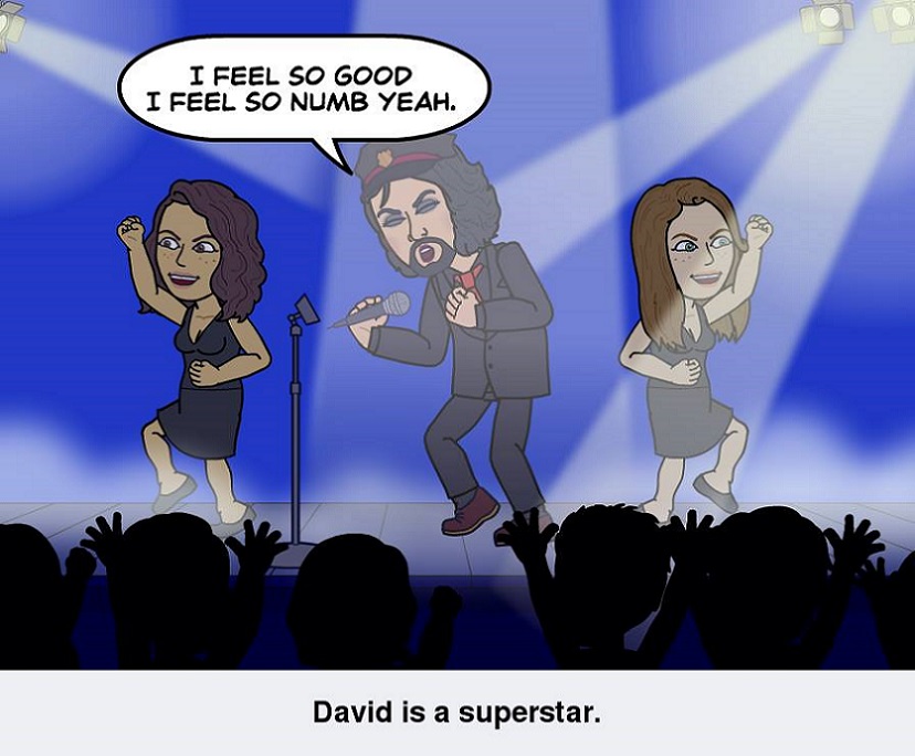 Well Now, Always Remember, Superdavebeastula The Tall White Gothic Vampire Alien, Coming To You From Laval Quebec Canada. So, It Seems to Me that in this world of Bitsrips, we have turned into Gothic Rock Stars. Since my Digital Host, David, and I love Rob Zombie's music, we decided to pay this tribute. Here we are singing the song called Feel So Numb. Either the music is live, or it is done with a Karaoke machine. Thankyouverymuch. ๐๐๐๐ฅฐ๐๐๐งโโ๐งโโ๐ธ๐ค๐น๐ฅ
