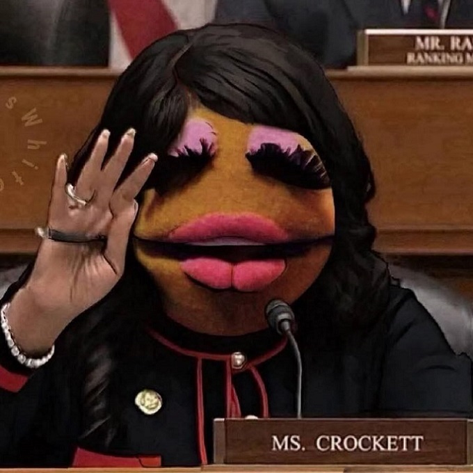 Well Now, Always Remember, Superdavebeastula The Tall White Gothic Vampire Alien, Coming To You from Laval Quebec Canada. So. It Seems to Me that my Digital Host, David, and I have something. It is a special Muppet Show Mania version of a Democrat Representative. The is a version of Jasmine Crockett that actually is for real. Thankyouverymuch. ๐๐๐๐๐๐