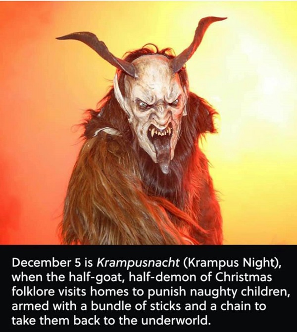 Well Now, Always Remember, Superdavebeastula The Tall White Gothic Vampire Alien, Coming To You from Laval Quebec Canada. So. It Seems to Me that the Night of the Krampus Parade has come and gone. As I am writing this in response to the post made by my Digital Host, David, we realize that it is now Wednesday December 10, 2025. December 5th, the Night of Krampus has come and gone. However, there is still the reminder to those kids who have been EXTREMELY naughty. On the 5th of this Month of December, the half goat, half demon of Germanic Christmas folklore visits households to punish these naughty kids. Armed with a bundle of sticks and a chain, he comes to take those unruly ones back to the underworld for severe punishment. So Merry Christmas if you've been naughty. Muhahahaha. Thankyouverymuch. ๐๐๐๐๐๐ฅฐ๐๐ค๐๐ฒโโโ๐จ๐