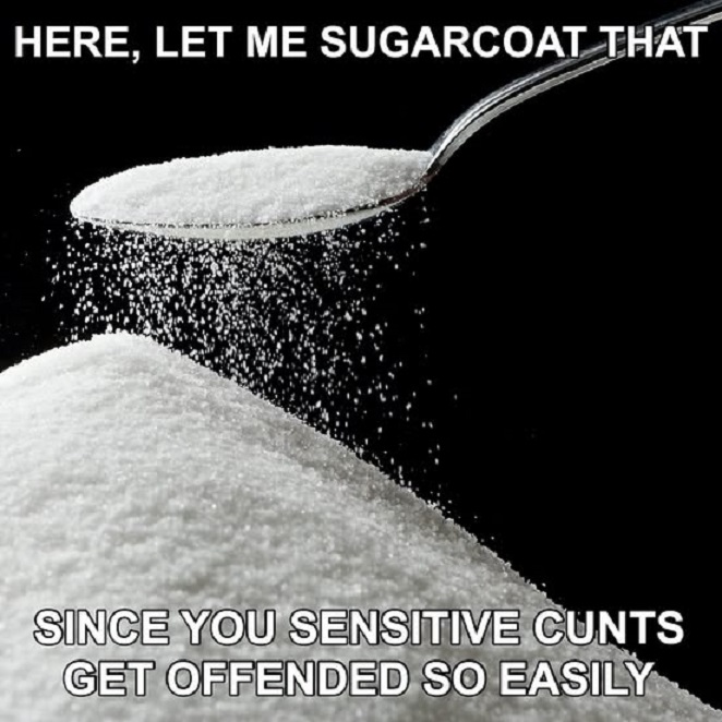 Well Now, Always Remember, Superdavebeastula The Tall White Gothic Vampire Alien, Coming To You from Laval Quebec Canada. So. It Seems to Me that we have to reiterate how Sensitive certain people are. These are the same people who are made fun of by the SJWCentral. These Social Justice Warriors, simply put, need statements to be Sugarcoated. The statement, Deal With It that my Digital Host, David, has put into his last post, is something that these PANTIFA can handle. Note also, that no matter how much Sugar you put, it will never be enough for the PANTIFA lovers. Thankyouverymuch. ๐๐๐๐๐๐