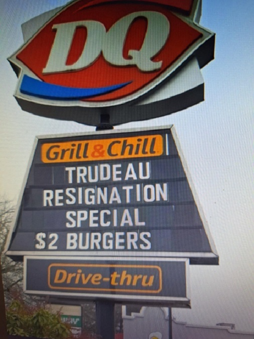 Well Now, Always Remember, Superdavebeastula The Tall White Gothic Vampire Alien, Coming To You from Laval Quebec Canada. So. It Seems to Me that we have something that happened in January of this year of 2025. A Dairy Queen in in Langly British Columbia celebrated the Resignation of Justin Trudeau. They were offering Burgers for $2.00. My Digital Host, David, and I were laughing our heads off when we saw it at the time. We wish we were there to celebrate this by buying these burgers but that's okay. This proves how mush he was hated in Canada. Thankyouverymuch. ๐๐๐๐๐๐